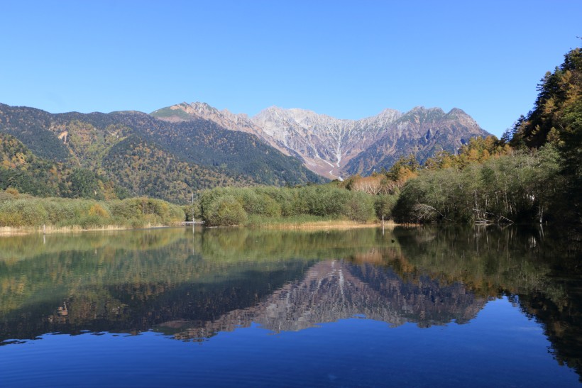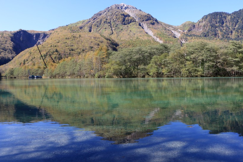 湖面に映りこんだ山々が大変きれいです。